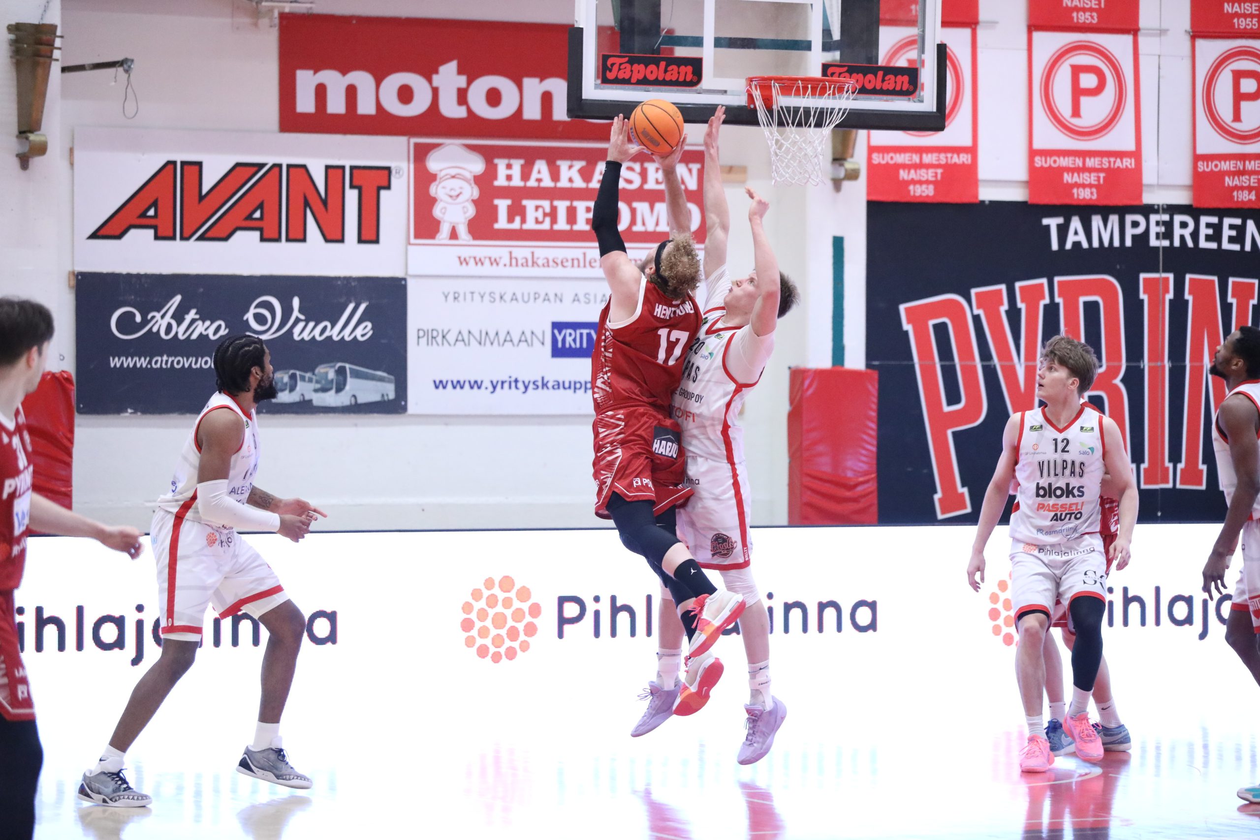 18 – 18. Ensimmäisen neljänneksen loppunumerot upotti Mikko Koivisto kolmosellaan 18 – 21. Pyrintö nousi pahasta sillasta alun jälkeen kovalla taistelulla molemmissa päissä kenttää.